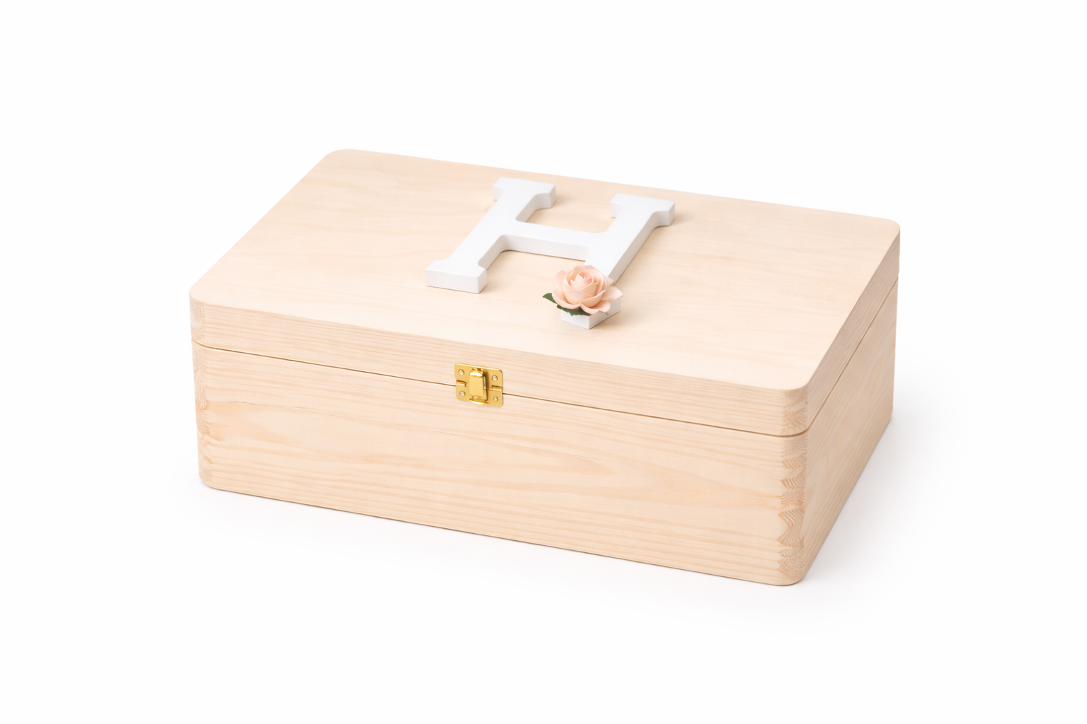 DREWNIANE PUDEŁKO Z LITERKĄ I RÓŻĄ